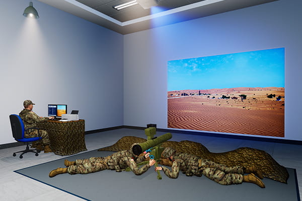 The simulator trains the pilot in loading the missile, detecting, prioritizing, acquiring, tracking, and engaging targets. The simulator replicates the actual controls of the missile launcher to enhance the training value. The software is adaptable and can be customized for all types of anti-tank guided missile launcher systems. The simulator is rugged and can be taken to remote areas for field training.